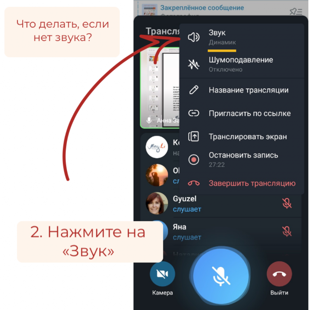 It often happens that you have successfully joined the broadcast, but do not hear anything. What to do in this case? See photo instructions below)